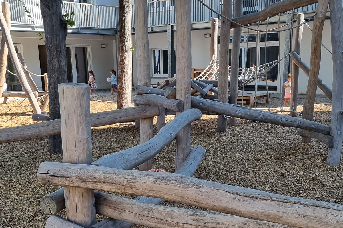 • Einbeziehung von Bestandsbäumen im Spiel- und Kletterbereich