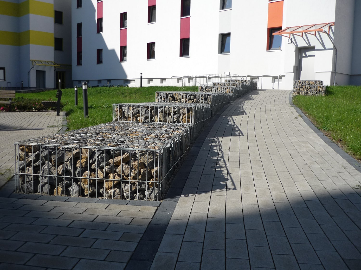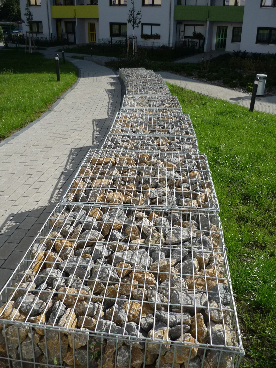 Merkmale:• Natursteingefüllte Gabionen dienen der Geländeabfangung entlang der Wege und Treppen.