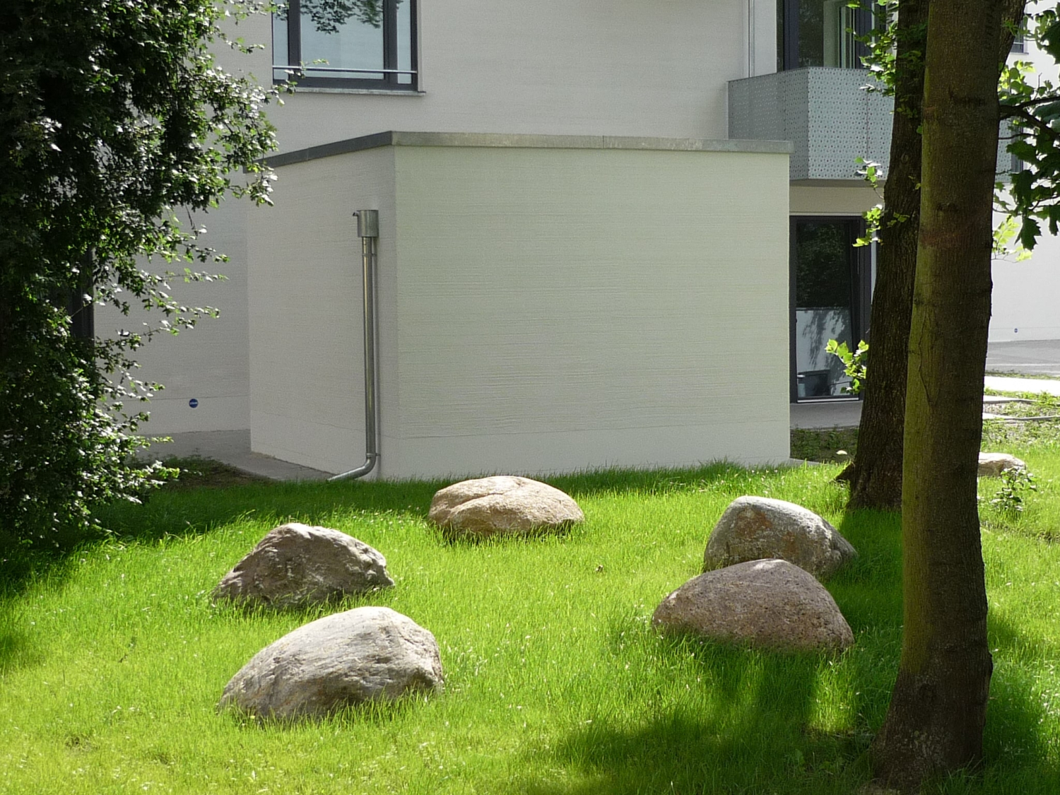 | Merkmale: | • Regenwasserversickerung vor Ort und Regenwasserrückhaltung über Einleitung in die Regenkanalisation mittels Zwischenspeicherung in vier Zisternen mit gedrosseltem Abfluss |
